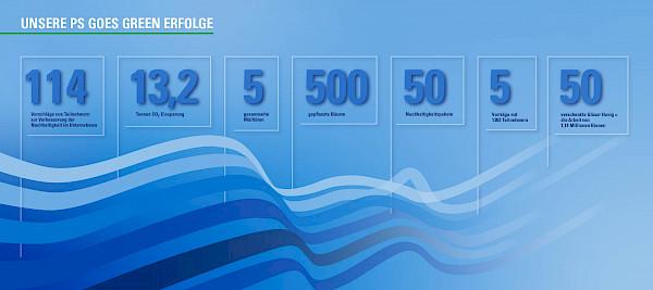 Ziel der TÜV SÜD internen „PS goes Green“ Kampagne war es, die MitarbeiterInnen zu mehr Nachhaltigkeit am und um den Arbeitsplatz zu motivieren. Das Konzept beinhaltete einen internen Wettbewerb, mehrere Informationsveranstaltungen und Vorträge.